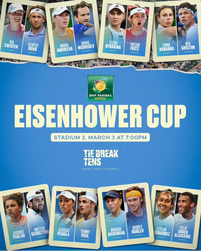 这项旨在为印第安维尔斯正赛暖场的表演赛阵容十分强大,除了斯瓦泰克、安德列娃、莱巴金娜、佩古拉、阿尼西莫娃、鲍里妮、纳瓦罗和费尔南德斯八位姑娘倾情参与之外,鲁德、梅德韦杰夫、卢布列夫、弗里茨、谢尔顿、保罗、贝雷蒂尼和阿利尼亚西姆八位男子球员也积极参与其中。
