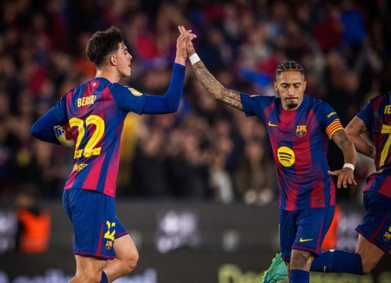 狂攻不止的巴塞罗那,在第29分钟打破了场上的平衡,亚马尔左路下底传中,贝尔纳尔门前包抄建功,帮助巴萨取得了1-0的领先,半场比赛结束之前,佩德里禁区内被铲翻,为巴萨赢得一粒点球,拉菲尼亚主罚命中,巴萨带着2球的领先,回到了中场更衣室。